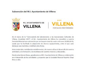 • Subvención a las asociaciones culturales de Villena. Anualidad 2025